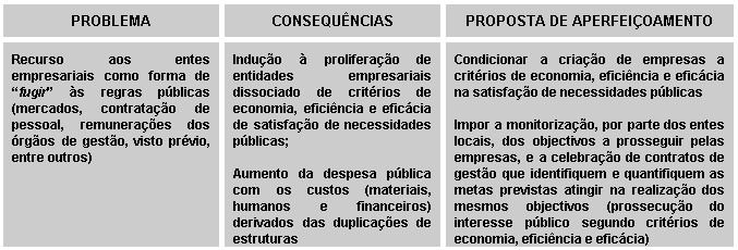 Podemos, ainda, assistir ao aumento da despesa pública se a criação de empresas não for acompanhada de uma reestruturação dos serviços municipais e intermunicipais que, até então, eram geridos directamente.