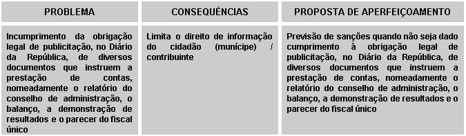 Constatamos que as empresas, embora legalmente obrigadas, não publicitam o relatório anual do conselho de administração, o balanço, a demonstração de resultados e o parecer do fiscal único, no Diário da República e num dos jornais mais lidos da área [35].